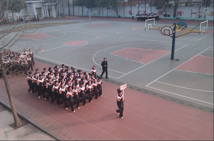 比賽成績采取現(xiàn)場比賽成績占總成績的80%,平時大課間跑操情況占總成績的20%的形式,從全校四個非畢業(yè)年級中共角逐出12個較優(yōu)勝的班級參加三月下旬的決賽。