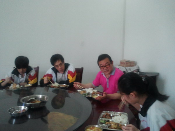 2012年5月9日,我校校長(zhǎng)李玉新與來(lái)自高三(一)班的管迪、陳思露、盤力豐三位同學(xué)在教職工食堂共進(jìn)午餐。這是我校高三學(xué)生考前心理輔導(dǎo)系列活動(dòng)之一,也是我校踐行“以生為本”辦學(xué)理念活動(dòng)之一。