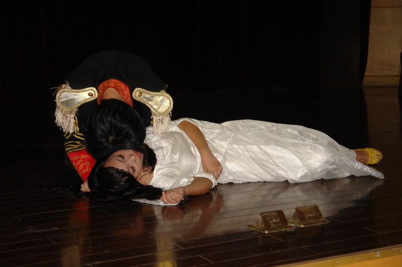 SOMA劇團(tuán)帶來(lái)了莎士比亞經(jīng)典劇目《李爾王》和英國(guó)著名文學(xué)作品《簡(jiǎn)愛》,其中《簡(jiǎn)愛》一劇曾榮獲全國(guó)學(xué)生戲劇比賽的一等獎(jiǎng),F(xiàn)場(chǎng)演員們?nèi)A麗的宮廷服飾,標(biāo)準(zhǔn)的英語(yǔ)發(fā)音,細(xì)致入微的情感,都讓我們附中學(xué)生大開眼界。司南劇團(tuán)表演的《一個(gè)無(wú)政府主義者的意外死亡》,演員們?cè)溨C幽默的表演迎來(lái)了臺(tái)下陣陣笑聲和掌聲。