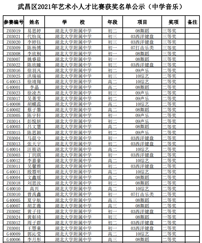 武昌區(qū)2021年藝術(shù)小人才比賽獲獎(jiǎng)名單(中學(xué)音樂(lè))