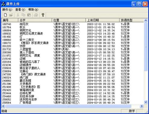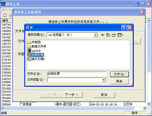 如果上傳的課件是一個(gè)單獨(dú)的文件,如PowerPoint文件(*.ppt),F(xiàn)lash(*.swf)文件等,選擇類型為“TS文件;”
