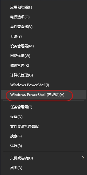 第一步:右鍵點開始菜單,選擇運行【W(wǎng)indows PowerShell(管理員)】