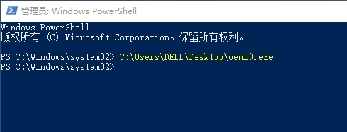 第二步:在彈出的窗口里輸入激活程序的路徑及程序名;如果不是很會操作,可以將下載的激活程序復(fù)制到D盤,并改名為1.exe,這樣只需在Windows Powershell(管理員)窗口中輸入d:\1.exe即可打開程序。